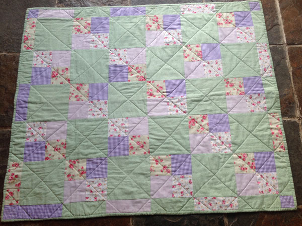 DB: Well I think it’s just because of the lap quilt because before this I would have thought quilt equals bed quilt, a bed quilt, and I think that would be most people’s initial thought. But then I’ve made that lap quilt. The kids like it on the settee if they are just if they’re just sitting watching the telly or like to snuggle up in it, and I have seen them, over the back of the settee, and I’m making a patchwork, a quilt cushion cover.