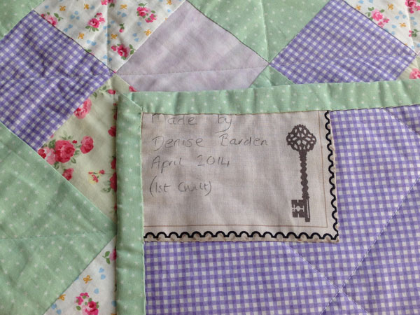 DB: It is. Sarah, the teacher at the quiltmaking class has said to every one of us, and she does it to even those that continue on whether it’s the first quilt or not, a name badge and there’s different things and we’ve wrote on the date we made the quilt, because what she says is, as time has gone through history a lot of quilts, they’ve got the quilt but they haven’t got any background information. Not that I can see in 100 years time my quilt being talked about in history lessons or history quilt lessons, Julie, but, you know, it’s actually its nice for as a reminder for us. And I suppose as time goes on you think “Oh well, yes I made that in April 2014.”