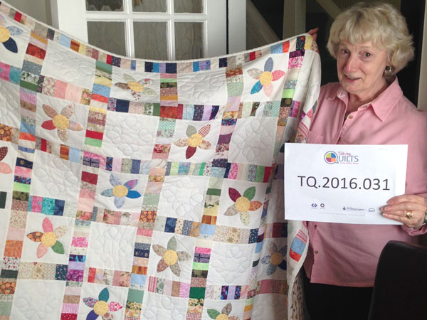 DB: That’s lovely. Could you describe sort of what colours you, you’ve got in your quilt?